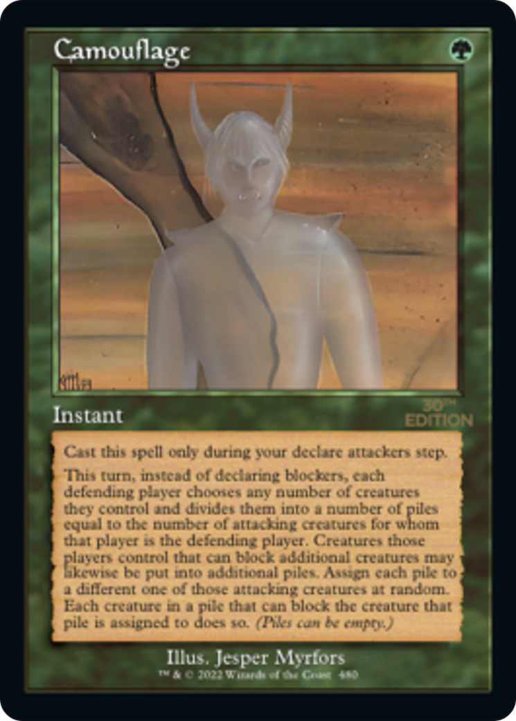 This turn, instead of declaring blockers, each defending player chooses any number of creatures they control and divides them into a number of piles equal to the number of attacking creatures for whom that player is the defending player. Creatures those players control that can block additional creatures may likewise be put into additional piles. Assign each pile to a different one of those attacking creatures at random. Each creature in a pile that can block the creature that pile is assigned to does so. (Piles can be empty.)