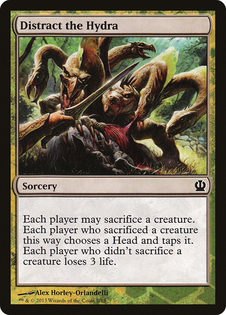 Each player may sacrifice a creature. Each player who sacrificed a creature this way chooses a Head and taps it. Each player who didn't sacrifice a creature loses 3 life.