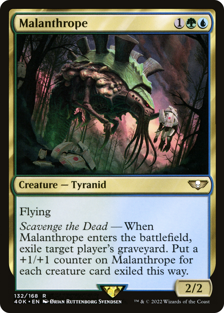 Scavenge the Dead — When Malanthrope enters the battlefield, exile target player's graveyard. Put a +1/+1 counter on Malanthrope fro each creature card exiled this way.