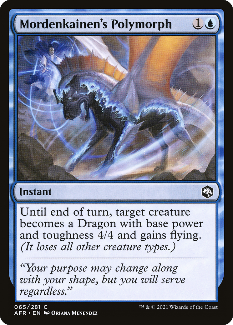 Until end of turn, target creature becomes a Dragon with base power and toughness 4/4 and gains flying. (It loses all other creature types.)