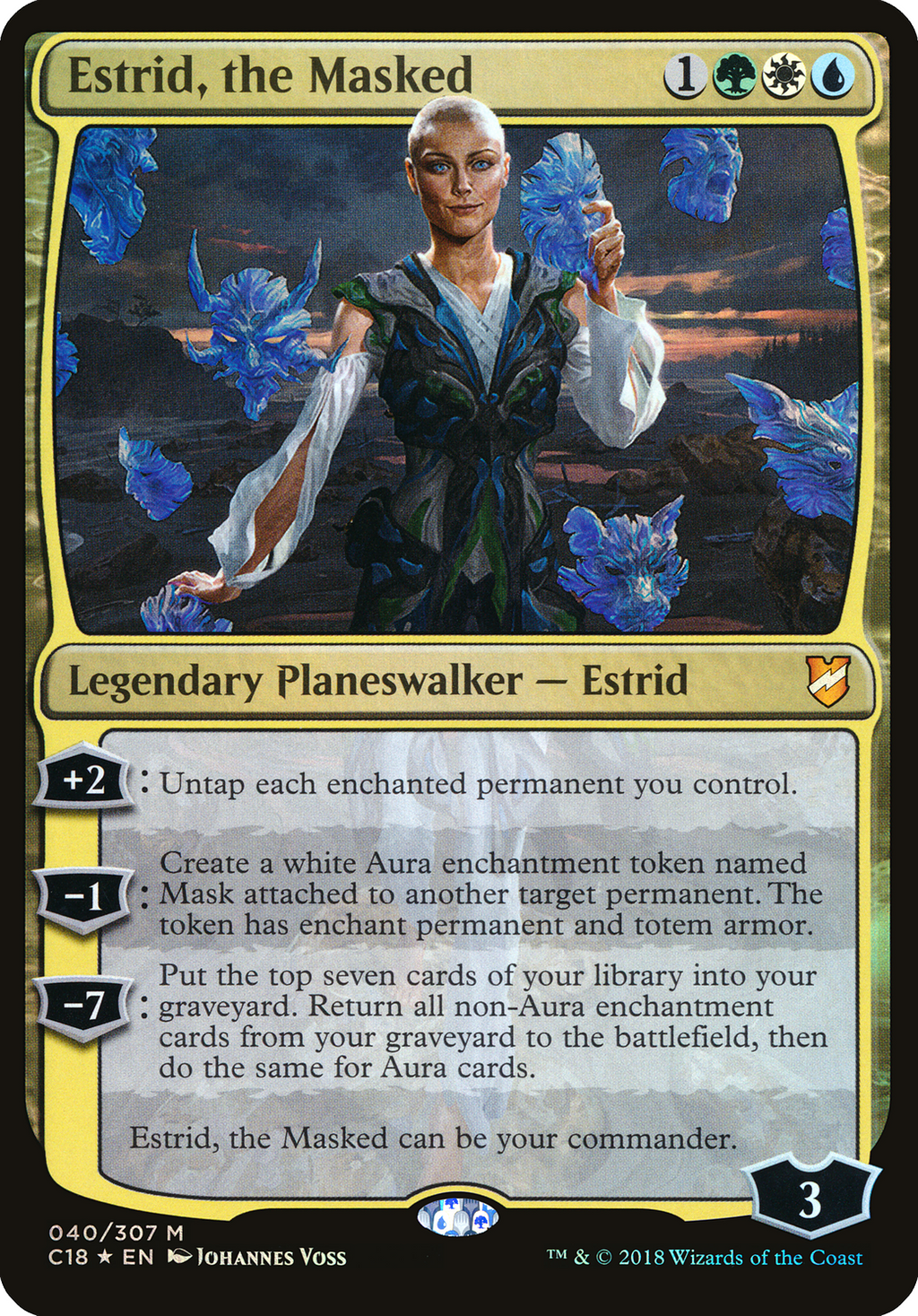 −1: Create a white Aura enchantment token named Mask attached to another target permanent. The token has enchant permanent and totem armor.