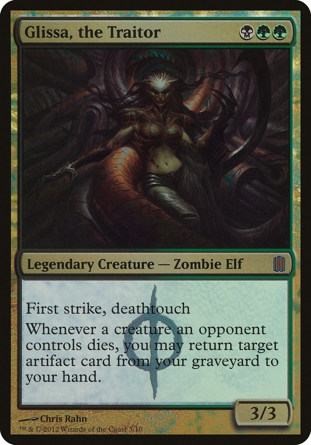 Whenever a creature an opponent controls dies, you may return target artifact card from your graveyard to your hand.