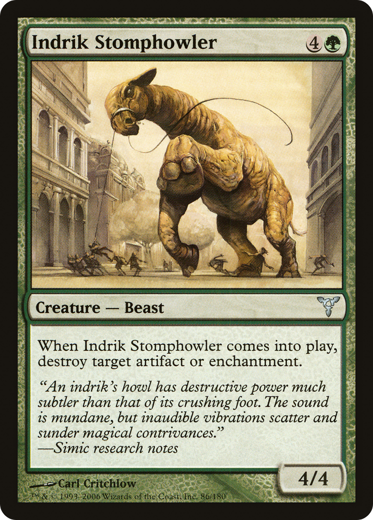 When Indrik Stomphowler enters the battlefield, destroy target artifact or enchantment.