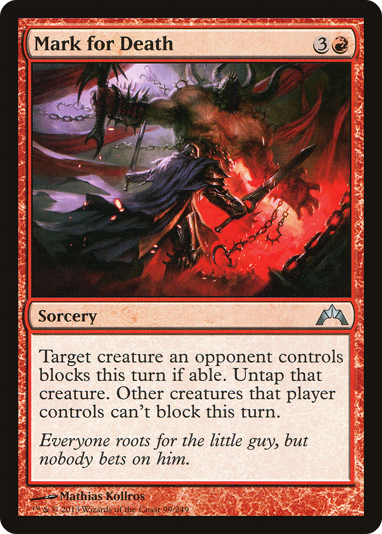 Target creature an opponent controls blocks this turn if able. Untap that creature. Other creatures that player controls can't block this turn.