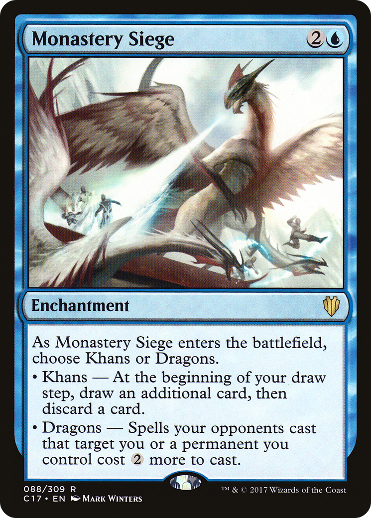 As Monastery Siege enters the battlefield, choose Khans or Dragons.