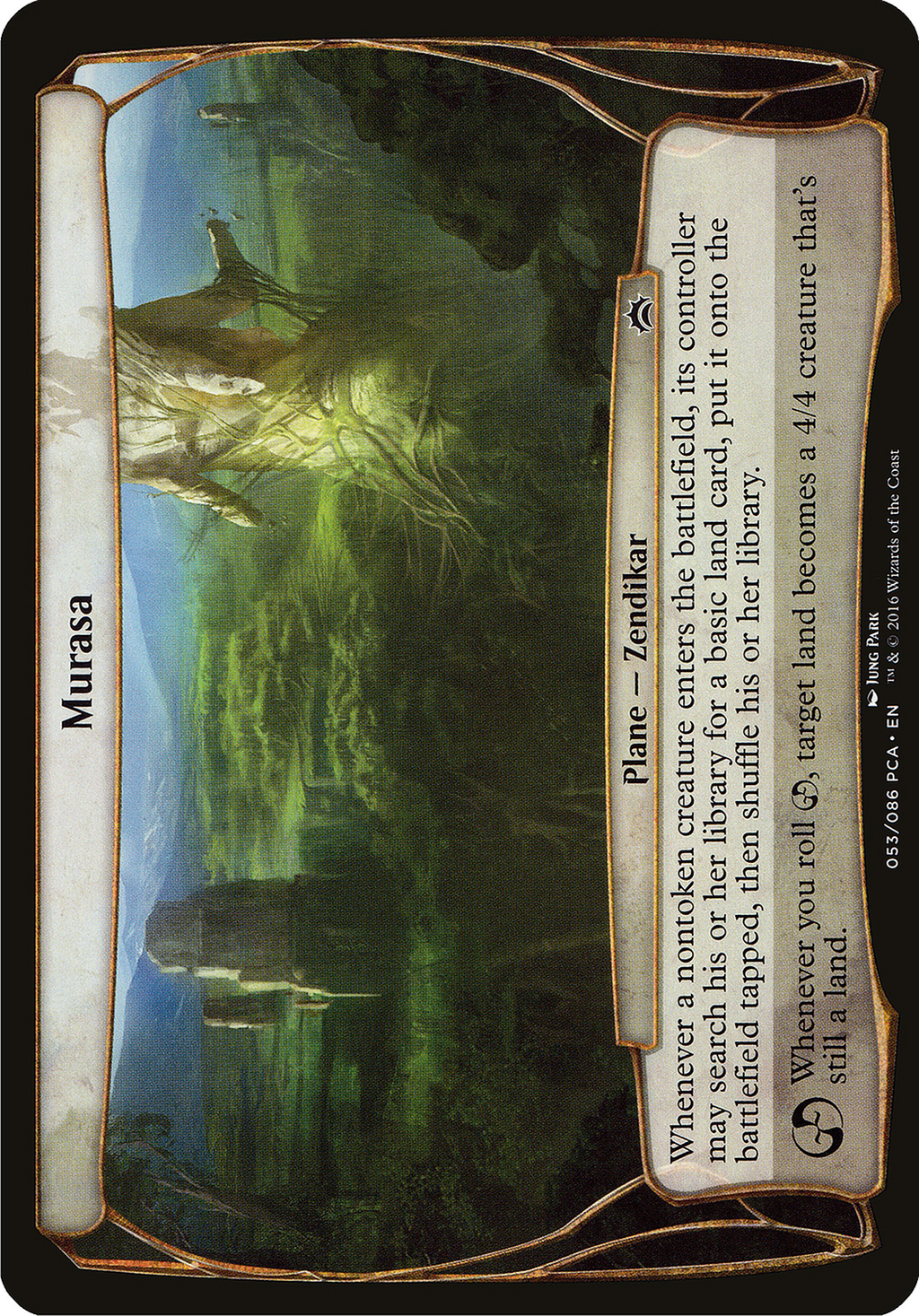Whenever you roll {CHAOS}, target land becomes a 4/4 creature that's still a land.