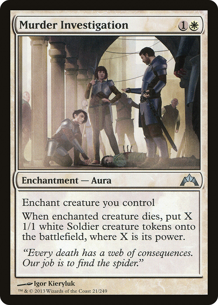 When enchanted creature dies, create X 1/1 white Soldier creature tokens, where X is its power.