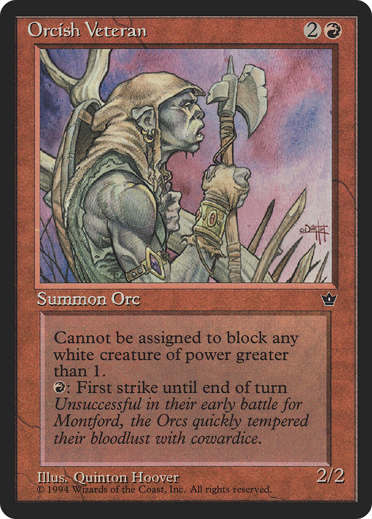 Orcish Veteran can't block white creatures with power 2 or greater.