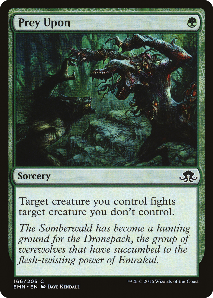 Target creature you control fights target creature you don't control. (Each deals damage equal to its power to the other.)