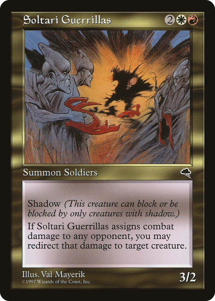 {0}: The next time Soltari Guerrillas would deal combat damage to an opponent this turn, it deals that damage to target creature instead.