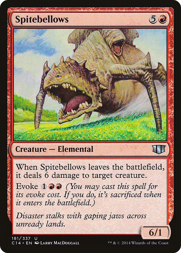 When Spitebellows leaves the battlefield, it deals 6 damage to target creature.