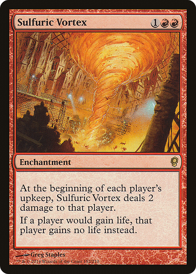 At the beginning of each player's upkeep, Sulfuric Vortex deals 2 damage to that player. If a player would gain life, that player gains no life instead.