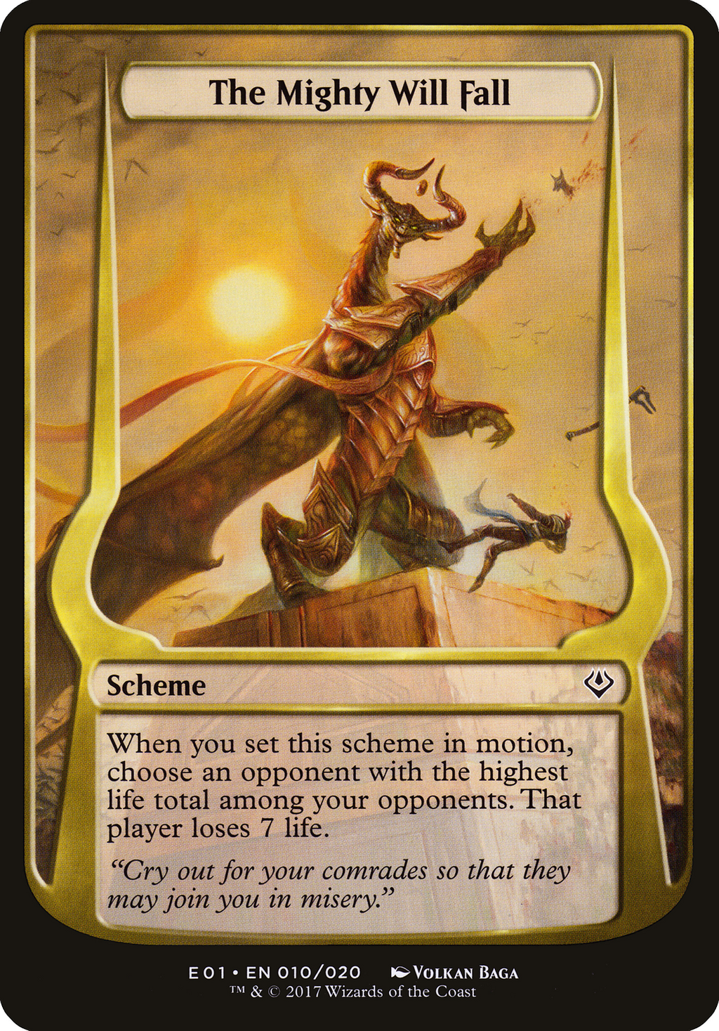 When you set this scheme in motion, choose an opponent with the highest life total among your opponents. That player loses 7 life.