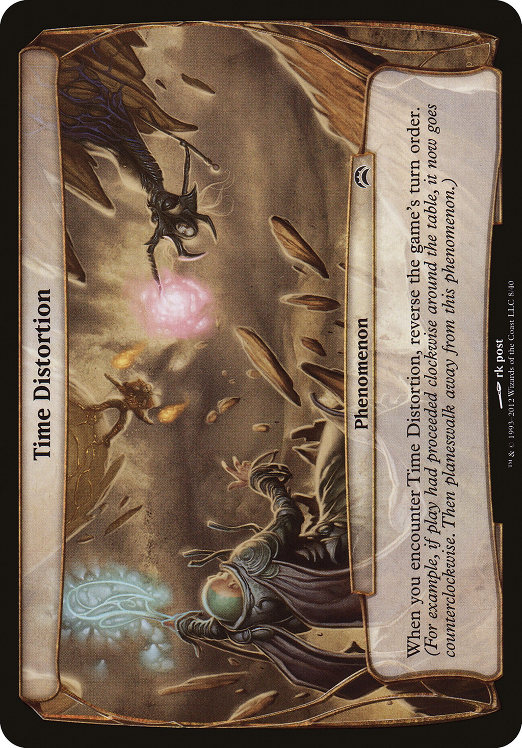When you encounter Time Distortion, reverse the game's turn order. (For example, if play had proceeded clockwise around the table, it now goes counterclockwise. Then planeswalk away from this phenomenon.)