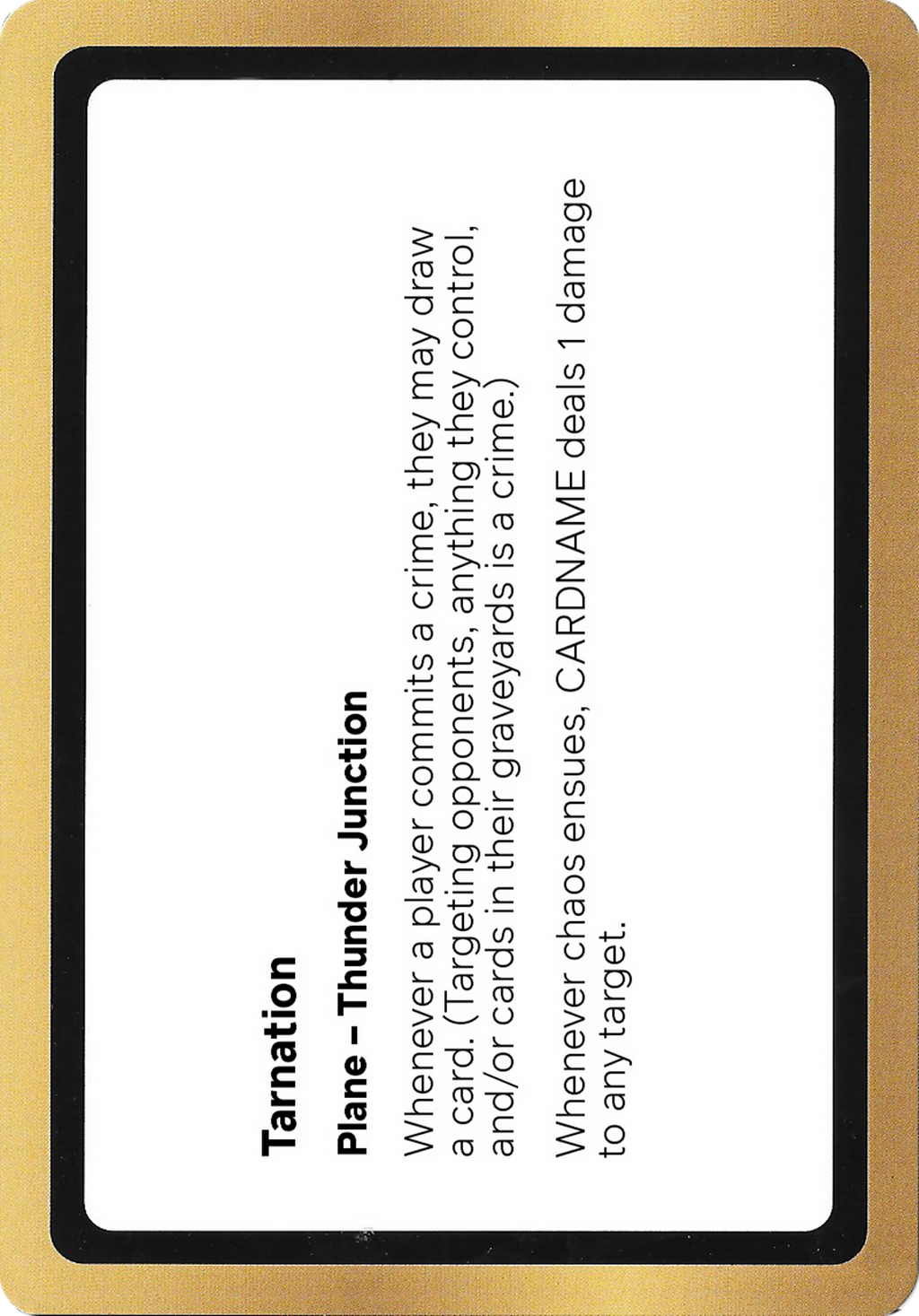 Whenever chaos ensues, Tarnation deals 1 damage to any target.